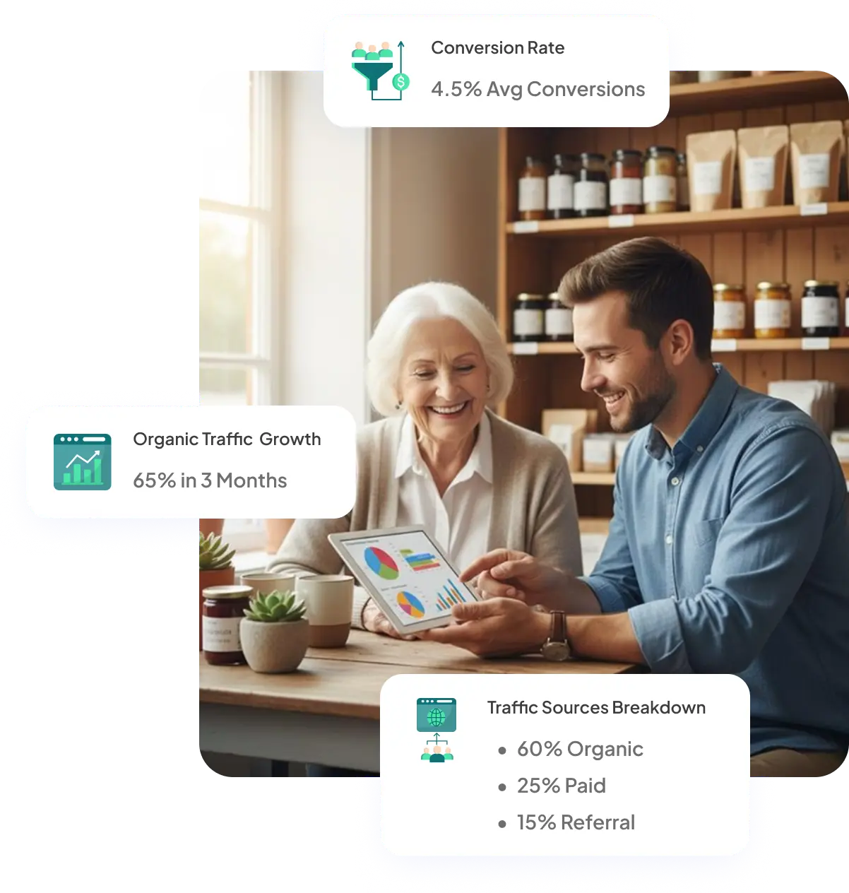 We track key performance indicators specific to your goals, providing regular reports with data on traffic, conversions, rankings, and ROI to demonstrate measurable results.